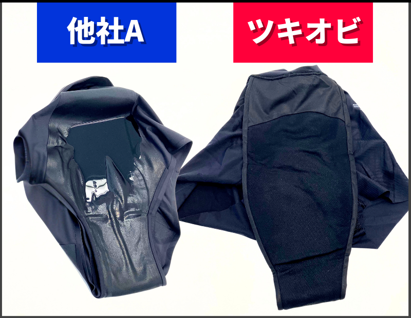 パンツの部分とパットの部分が別になっていてしっかり当たるのと、下着の付け根周りの円形が太ももにぴったり当たるような布の加工がされているので 横漏れの心配が少なく感じました。